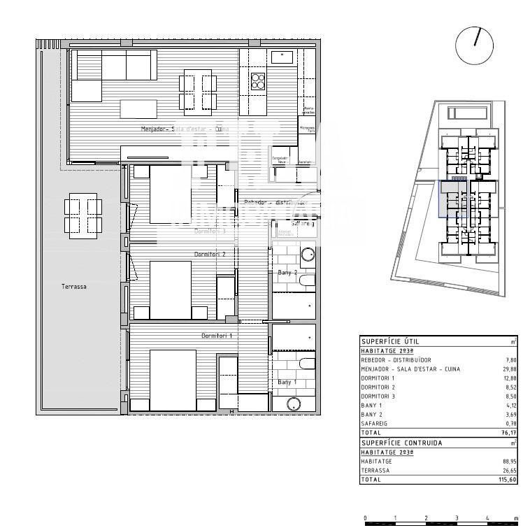 Si desea vivir en un entorno privilegiado cerca de todos los servicios no deje escapar esta oportunidad venga a visitar esta nueva construcción de un edificio plurifamiliar compuesto por 24 viviendas situado en la localidad de Cunit. .Este bloque de nueva construcción ha sido diseñado con un enfoque en la elegancia moderna. Cada piso ha sido meticulosamente diseñado para maximizar el espacio y la luz, creando un ambiente acogedor y atractivo y con los más altos estándares de calidad. Desde los acabados interiores hasta los electrodomésticos de alta gama, como cada pequeño detalle, garantizando la máxima satisfacción para del propietario..Con una superficie construida total de 115,60 m2 de vivienda, y 88,95 m2 construidos interior de vivienda se encuentra distribuidos 3 amplias habitaciones (1 de ellas suitte), salón comedor con cocina americana de 31,43 m2 totalmente equipada con todos los electrodomésticos, 2 baños completos, 1 lavadero con los electrodomésticos integrados de lavadora y secadora marca BALAY, recibidor, terraza de 26,65 m2, suelos porcelanamicos en toda la vivienda, carpintería exterior de aluminio de color gris claro de perfil eficiente y con rotura de puente térmico, carpintería interior con puertas correderas lacadas en blanco..Además, contamos con zona comunitaria con piscina, ascensor y plazas de parking opcionales. .El entorno y municipio:.Cunit se encuentra situado en la comarca del Bajo Penedés y en la provincia de Tarragona aunque está incluido en la tercera corona de la región urbana de Barcelona. Limita con Segur de Calafell (localidad del municipio de Calafell), de la misma comarca, así como con Cubellas, en la comarca del Garraf, y Castellet y Gornal, en la comarca del Alto Penedés, ambos de la provincia de Barcelona..Su paisaje es típicamente mediterráneo, desde los 2,5 km de playas de arena fina, protegidas por los espigones que le proporciona sus formas semicirculares características, pasando por las planicies agrícolas (denominadas Prats de Cunit i Plana del Castell) hasta las sierras del centro (Sierra de Sant Antoni) y norte del municipio, siendo parte de las últimas montañas de la sierra litoral catalana...