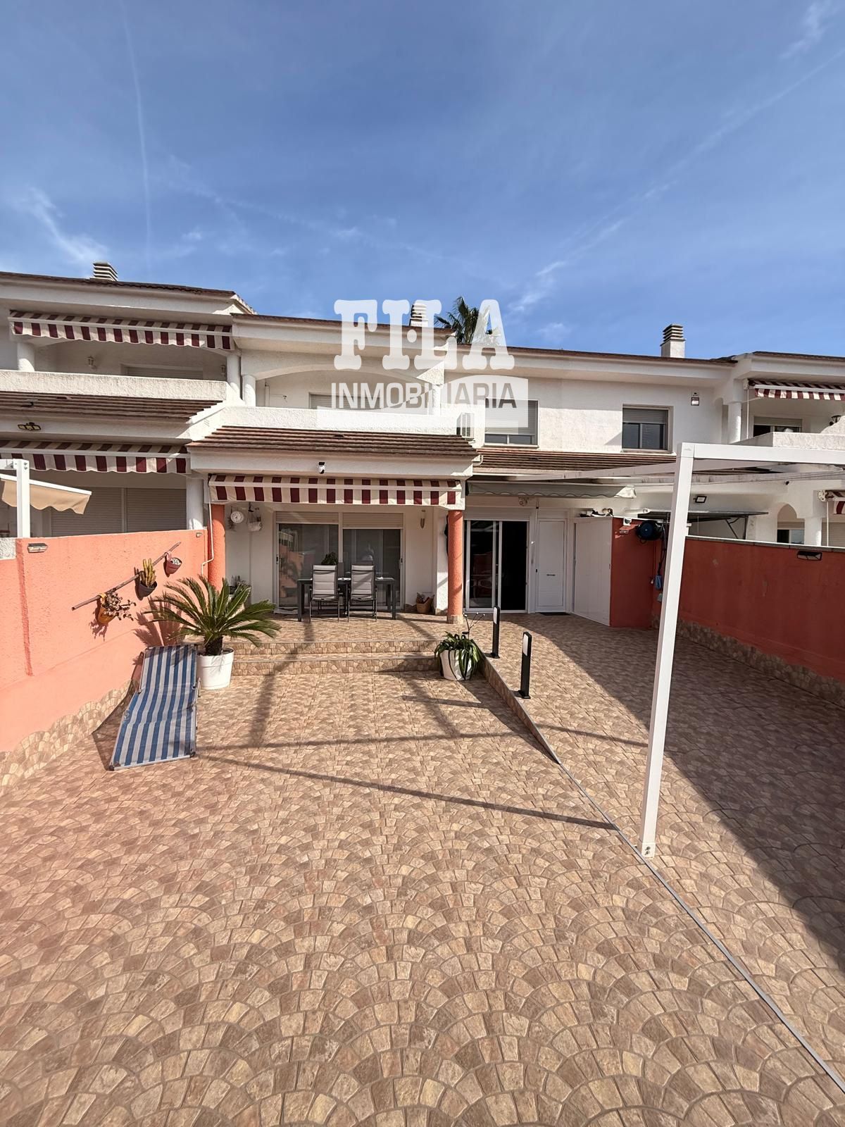 .Casa adosada para entrar a vivir muy bien comunicada ,junto a la parada de autobuses y autopista, a solo 10min ,en coche de la linea de mar y de todos los servicios. ..La vivienda dispone de 2 plantas ,en su planta superior cuenta con terraza jardin delantera ,recibidor,3 habitaciones dobles (una con terraza),y un cuarto de baño completo,en su planta inferior dispone de parking para 3 vehiculos,terraza delantera de 50m2 con toldos y armario para lavadora con acceso desde el salon comedor y de la cocina oficce independiente completamente equipada con armario para lavadora, ademas cuenta en esta planta con un dormitorio individual y un cuarto de baño.entre sus caracteristicas principales la casa cuenta con cierres de aluminio climalit ,aire acondicionado y calefaccion a gas...¡ESTA ES UNA BONITA CASA MUY BIEN CONSERVADA PARA VERLA!